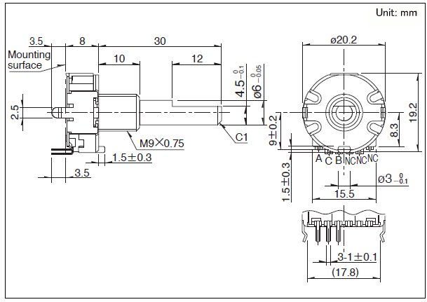 20.2x19.2x10 20型金属轴型 以相同形状可对应编码器/电位器的重扭矩,良好触感型。
