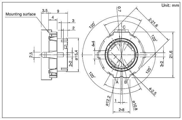 21.6x21.6x4 21型中空轴装置 适合多功效化的中空型,满足节省空间化的厚4mm薄型。