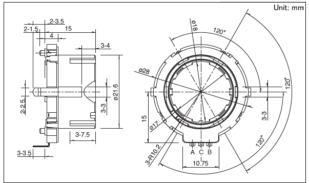 28x29x4 28型中空轴装置 实现了本体厚度4mm的薄型化和良好的操作感受。